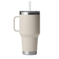 The Yeti Rambler Mug with Straw Lid is constructed with stainless steel and double-wall vacuum insulation to keep 35 ounces of your favorite beverages icy cold all day long. The elevated handle and cupholder friendly base makes this travel mug extremely travel friendly and adventure ready. The straw lid has a molded-in stopper so your reusable straw stays safely in place.