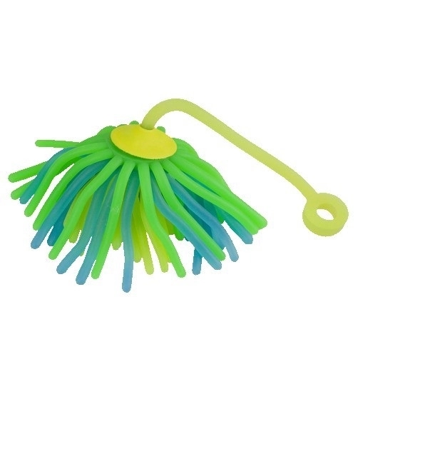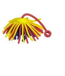 Rubbery tether stretches for a true yo-yo action while the tentacles fly! This toy is a guaranteed traffic builder at conferences and great for office stress relief! Quality construction, robust weight and patent pending. Don't accept inferior substitutes! Safety tested. Three color designs. Either Blue or Yellow cap. 8 3/4" L
