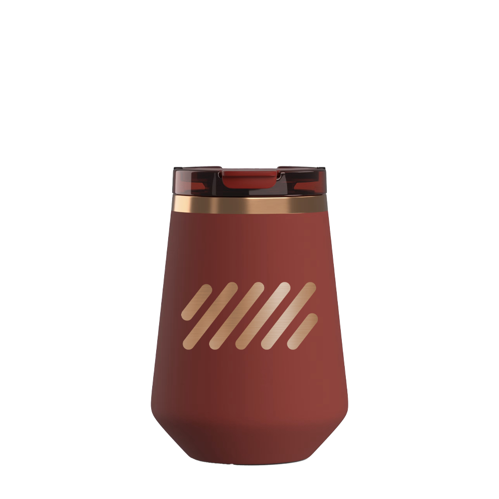 Elevate your aperitivo with the new Happy Hour Wine Tumbler. Lock in the right temperature up to 24 hours for every wine with the double-wall vacuum insulated stainless steel. Enjoy pure taste and zero flavor transfer with the ceramic-lined interior. The soft-touch, grippy exterior offers a luxe feel that sets it apart from ordinary tumblers. Keep every drop inside with the threaded, leak-resistant lid designed with a full-sip wide mouth opening. With a sweat-free exterior and built-in silicone coaster, this can cooler is stays upright and dry.